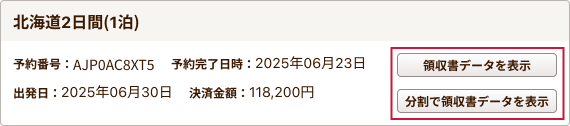 ※宿泊施設や航空会社に直接申し出た予約内容変更については、領収書の金額が正しく表示されない場合があります。